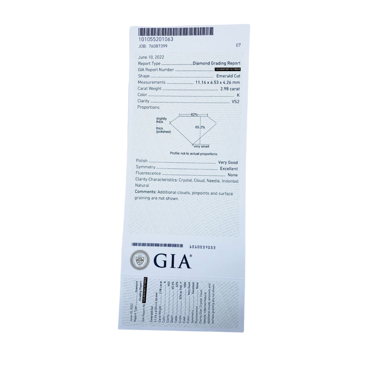 鑑定書: GIA鑑定書(センター石)